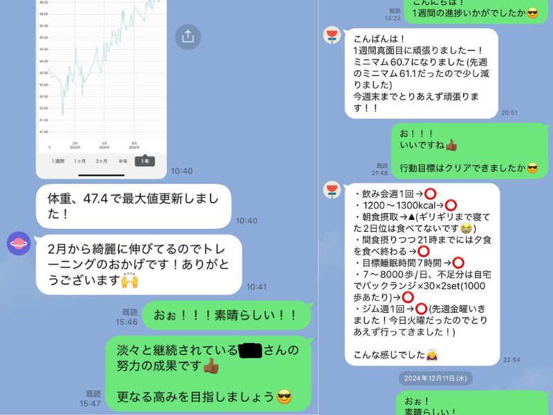 はい、毎回のセッション内やLINEで食事内容のフィードバック・アドバイスを行っています。