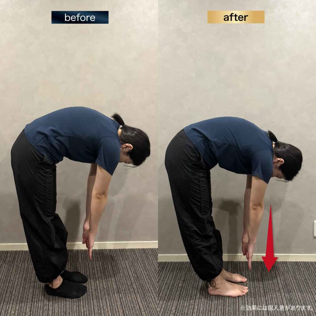「上がりづらかった肩が上がるようになった」「前屈の記録が伸びた」といった変化に、驚かれるお客様もいらっしゃいます。しかし、これらは身体のことを熟知していれば、トレーニング開始後すぐに体感いただけることで、一過性の変化ではまたすぐに元通りになってしまい、あまり意味がありません。